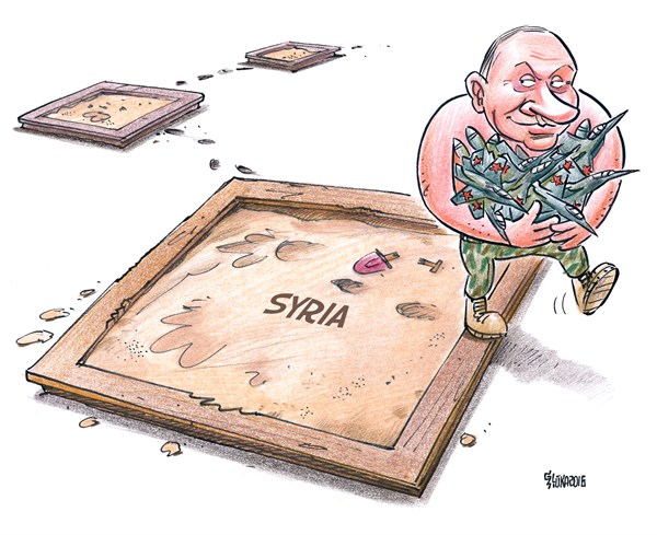 أما عن انسحاب بوتين من الأراضي السورية فقدم موقع “بولتيكال كارتونز” هذا الرسم: