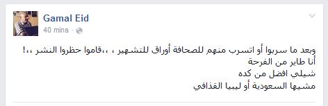 علق الناشط السياسي جمال عيد، على إعلان حظر النشر في قضية التمويل الأجنبي، من خلال تعليق نشره عبر صفحته الشخصية بموقع التواصل الاجتماعي “فيس بوك”.
