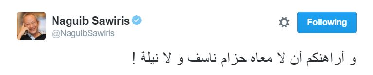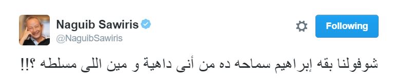 – نجيب ساويرس: “شوفولنا بقه إبراهيم سماحة ده من أنهي داهية ومين اللي مسلطه؟ وأراهنكم إن لا معاه حزام ناسف ولا نيلة!.“.