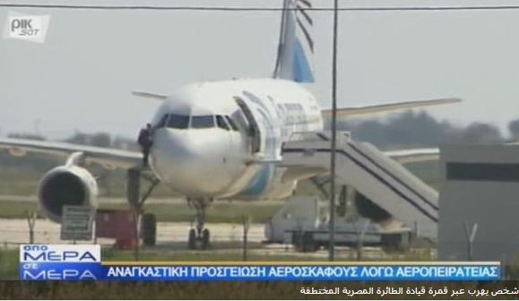 تمكن 3 أشخاص من المحتجزين داخل الطائرة المصرية التابعة لشركة “مصر للطيران” بمطار لارنكا بقبرص، من الهروب عبر قمرة  قيادة الطائرة.