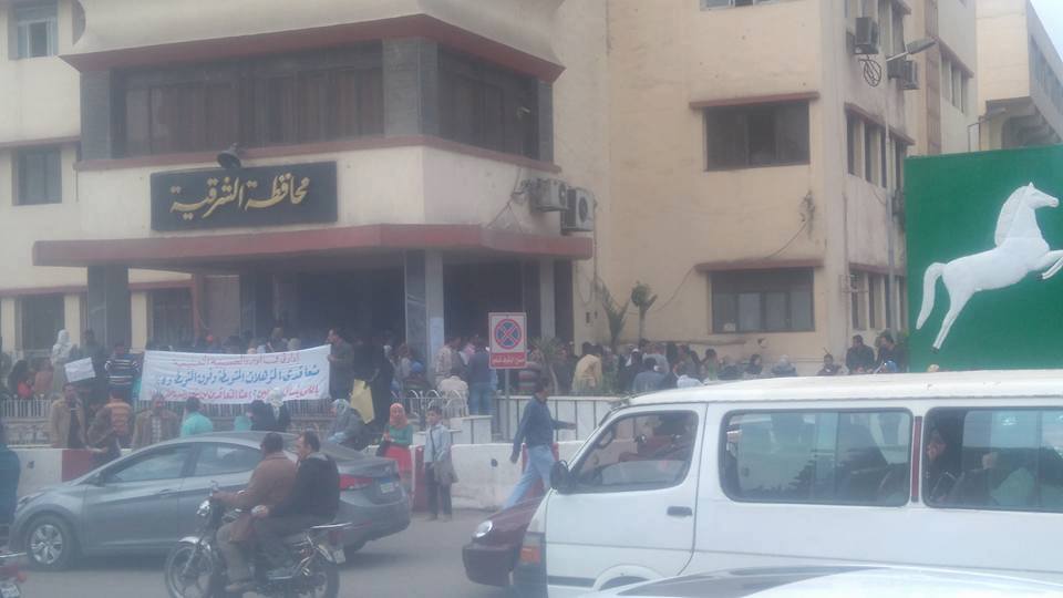 نظم عدد من المعلمين وقفة احتجاجية، ظهر اليوم أمام مبنى محافظة الشرقية بمدينة الزقازيق، مطالبين بتثبيتهم في وظائفهم ورفع الأجور.