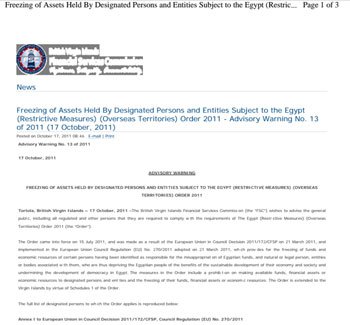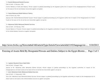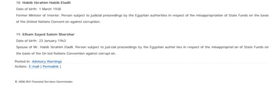وأصدرت شركة “بريتيش فيرجين أيلاند”، قائمة بالأسماء في أكتوبر 2011، بعد تفعيل قرار التجميد في يوليو من العام نفسه، مرفقة بقرار الاتحاد الأوروبي.