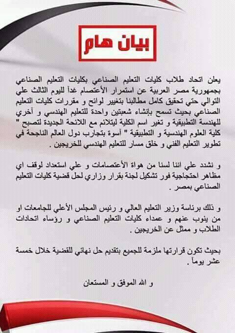 وذكر الطلاب المحتجون أن أهم مطالبهم هي: