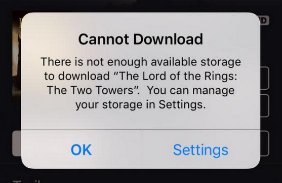 – يجب أن تقوم بعملية بحث عن فيلم مساحته أكبر من المساحة المتبقية لديك في الذاكرة، على سبيل المثال “The Lord of the Rings:The Two Towers” وبعدها انقر فوق Rent، حيث سيظهر لك مربع يبلغك أن من غير الممكن أن تقوم بتحميل الفيلم لعدم وجود مساحة كافية.