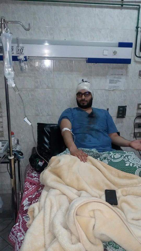 وتابع : د. محمد أصيب بجرح متهتك بالرأس حوالى خمسة سنتيمترات، بعمق فروة الرأس، مشيرًا إلى أنهم وضعوه بغرفة العناية المركزة، وتم عمل أشعة مقطعية على المخ ترجح وجود ارتجاج بالفص الأيمن من المخ.