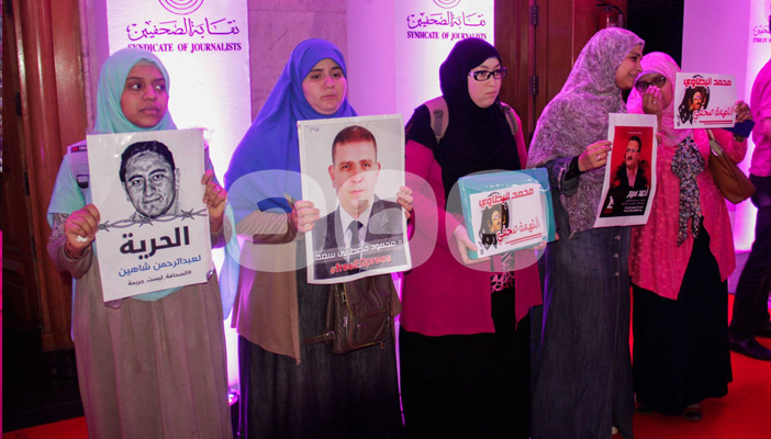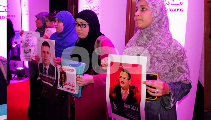 نظم عدد من أهالي الصحفيين المعتقلين وقفة رمزية حملوا خلالها صور ذويهم المعتقلين داخل نقابة الصحفيين، أثناء احتفال نقابة الصحفيين بعيدها الماسي، وسط حضور عدد كبير من الصحفيين والشخصيات العامة.
