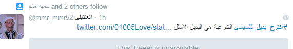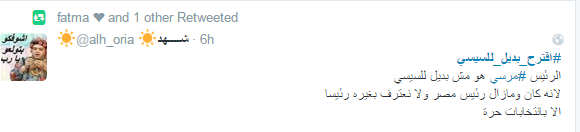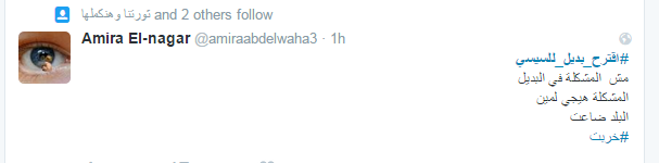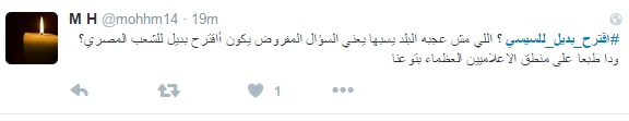 دشن مغردو موقع التدوين المصغر “تويتر” هاشتاج “اقترح بديلا للسيسي” الذي تصدر الموقع العالمي لعدة ساعات.