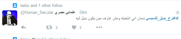 وقال حساب آخر باسم “علماني مصري”: “ندمان إني انتخبته ومش عارف مين بيكون بديل ليه”.