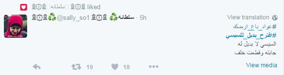 وسخرت سالي من الهاشتاج نفسه قائلة: “السيسي لا بديل له جابته وقطعت خلف”.
