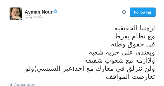 وتابع: “أزمتنا الحقيقية مع نظام يفرّط في حقوق وطنه ويعتدي علي حرية شعبه ولا أزمة مع شعوب شقيقة، ولن ننزلق في معارك مع أحد غير السيسي ولو تعارضت المواقف”.
