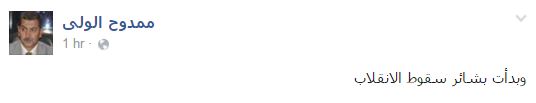 الخبير الاقتصادي ورئيس مجلس إدارة الأهرام الأسبق ممدوح الولي كان أكثر المتفائلين، فكتب: “وبدأت بشائر سقوط الانقلاب”.