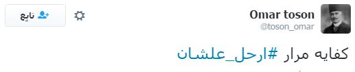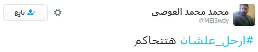 دشن رواد مواقع التواصل الاجتماعي "تويتر"، هاشتاجا تحت اسم "#ارحل_علشان"، تناولت تغريداته انتقادًا واسعًا لعبدالفتاح السيسي، خاصة بعد قراره الأخير بالتنازل عن جزيرتي تيران وصنافير إلى المملكة العربية السعودية