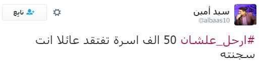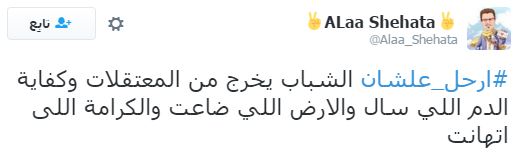 دشن رواد مواقع التواصل الاجتماعي “تويتر”، هاشتاجا تحت اسم “#ارحل_علشان”، تناولت تغريداته انتقادًا واسعًا لعبدالفتاح السيسي، خاصة بعد قراره الأخير بالتنازل عن جزيرتي تيران وصنافير إلى المملكة العربية السعودية.