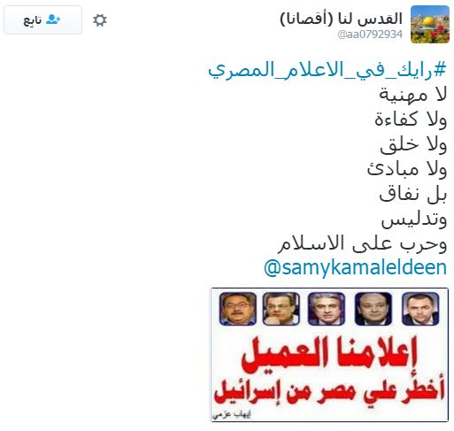 تدشين هشتاج “رأيك في الإعلام المصري” ومغردون: إعلامنا أخطر من إسرائيل