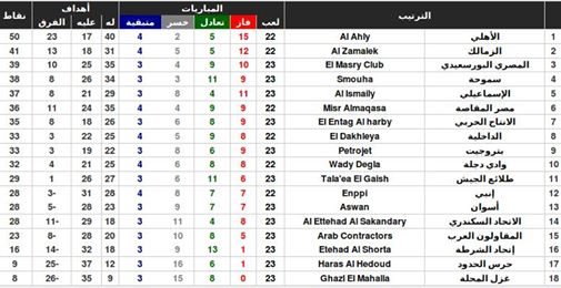 ويتصدر النادي الأهلي جدول المسابقة حتى الآن برصيد 53 نقطة، بفارق 11 نقطة عن فريق الزمالك صاحب المركز الثاني.