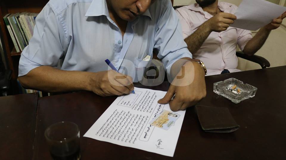 وقع عدد من المواطنين وأعضاء حزب الكرامة على استمارات حملة جمع توقيعات بعنوان “أرضي”؛ اعتراضا على تنازل عبدالفتاح السيسي عن جزيرتي تيران وصنافير للمملكة العربية السعودية.
