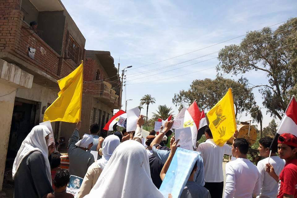 نظمت حركة أحرار “قرى حوش عيسى” سلسلة بشرية بدأت في وقت مبكر من صباح اليوم على طريق مصنع الغاز، رفع المشاركون فيها لافتات تحمل عبارات: “دولة حاتم، عواد باع أرضك، مرسي صان والسيسي خان”، كما خرج شباب حوش عيسى في مسيرة جديدة أمام مسجد خاتم المرسلين لتطوف أحياء “المنشية، السنوسي، السويقة”.