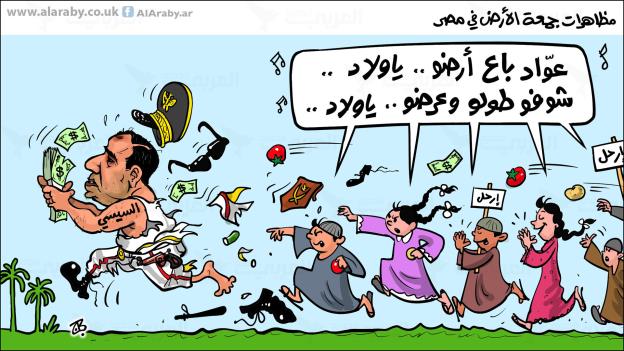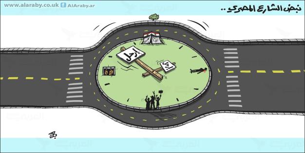 وجاء في موقع “العربي الجديد” رسم يوضح اتجاه مطالب الشعب المصري تحت شعار “ارحل”: