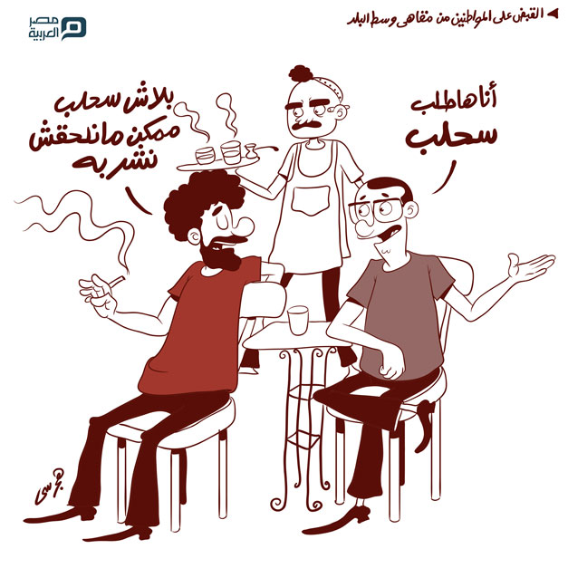 ونشر موقع “مصر العربية” رسما ساخرا من حملات الاعتقال التعسفي للشباب من المقاهي قبيل مظاهرات 25 أبريل: