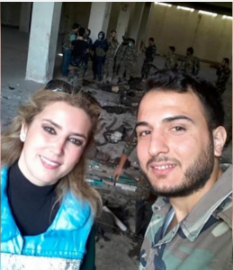 نشرت المذيعة السورية، كنانة علوش، مراسلة قناتي “سما” و”الدنيا”، التابعتين لنظام بشار الأسد، صورة “سيلفي” لها، ومن خلفها جثث تعود لعناصر من الثوار.