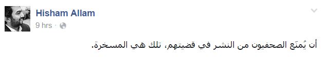 وقال -عبر منشور له على “فيس بوك”-: “أن يُمنَع الصحفيون من النشر في قضيتهم، تلك هي المسخرة”.