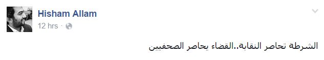 وأضاف “علام” -عبر منشور آخر- “الشرطة تحاصر النقابة.. القضاء يحاصر الصحفيين”.