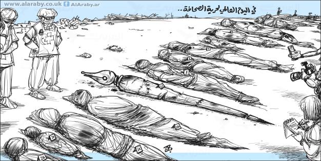 رسم موقع “العربي الجديد” رسمًا يصور الصحافة شهيدة للأنظمة القمعية: