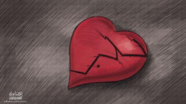 وفي سياق آخر، ما زالت مأسأة حلب تخيم على موضوعات رسوم الكاريكاتير؛ حيث نشر موقع “العربية نت” رسمًا صور الوطن العربي بالقلب المتشقق من وضع سوريا: