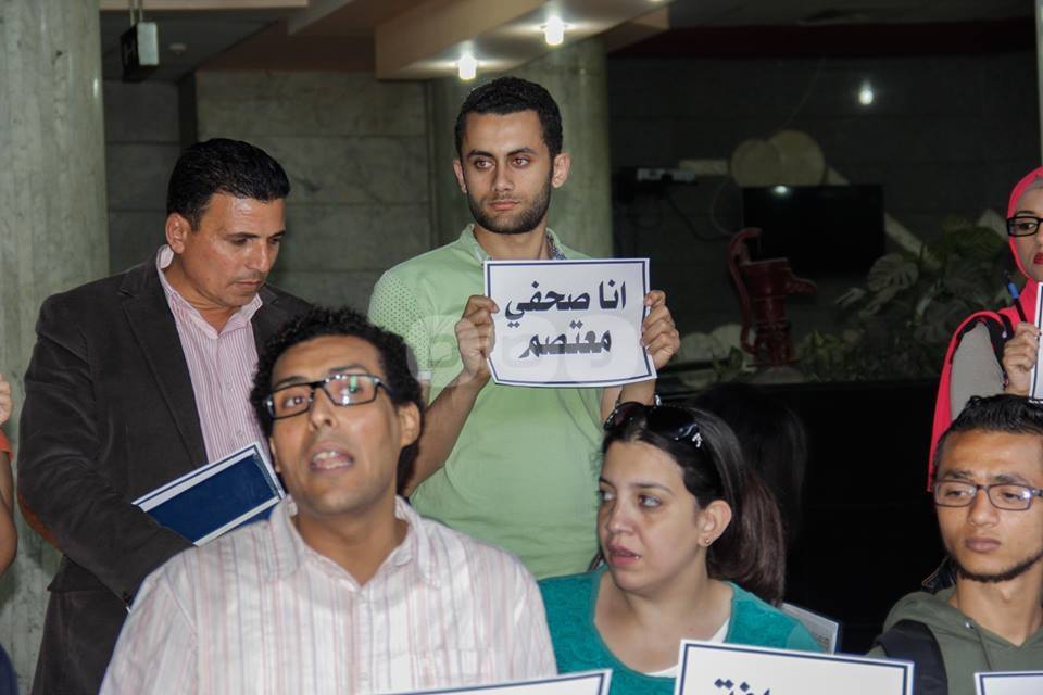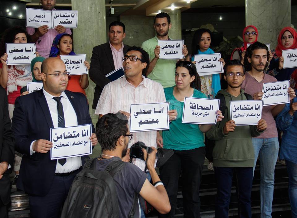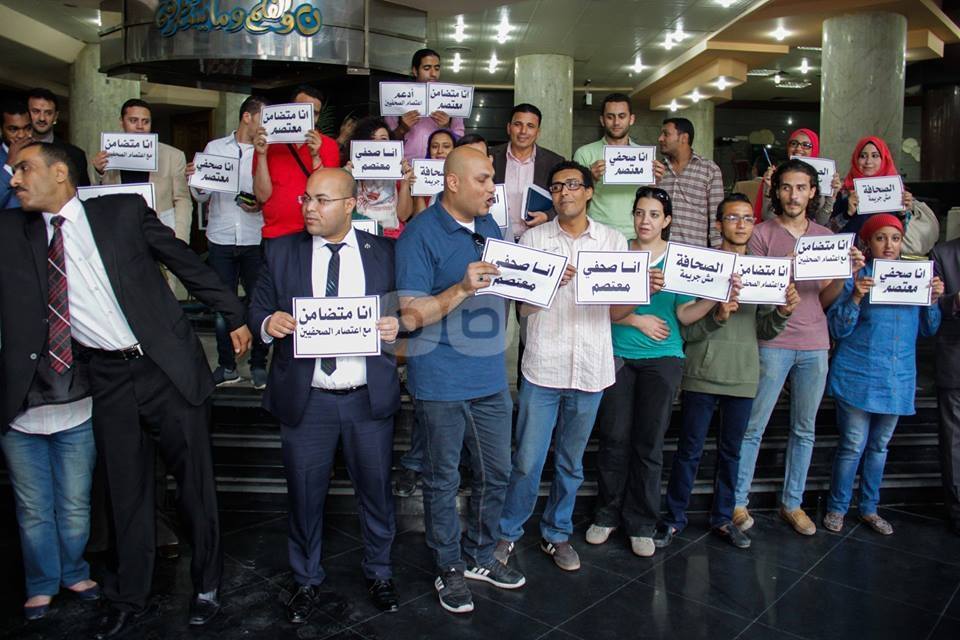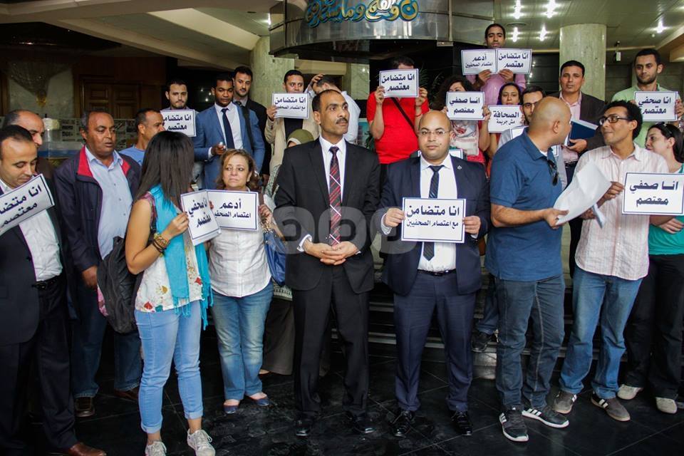 نظم عدد من الصحفيين والمحامين وقفة احتجاجية، عصر اليوم، داخل مقر نقابة الصحفيين؛ رفضا لاقتحام مقر نقابة الصحفيين، ورفضا للهجمة الشرسة التي تتعرض لها النقابات المهنية واعتقال العديد من أعضائها.