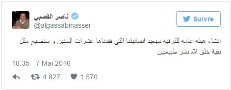 كتب القصبي: “إنشاء هيئة عامة للترفيه سيعيد إنسانيتنا التي فقدناها منذ عشرات السنين، وسنصبح مثل بقية خلق الله بشرًا طبيعيين”.