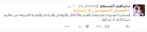 – د. إبراهيم المشيقح: “إنسانيتنا موجودة بمجتمعنا بالقيم والأخلاق والتواصل والتراحم والمحبة المنبثقة من تعاليم ديننا، لكنك لا تدركها”.