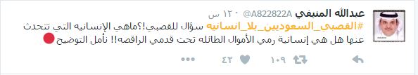 وأثارت تغريدات القصبي موجة احتقان وغضبا واسعا لدى بعض مستخدمي شبكات التواصل الاجتماعي، ودشن عدد من النشطاء السعوديين هاشتاج #القصبي_السعوديين_بلا_إنسانية.