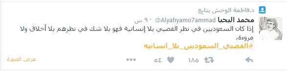 – محمد اليحيا: “إذا كان السعوديون في نظر القصبي بلا إنسانية فهو بلا شك في نظرهم بلا أخلاق ولا مروءة”.