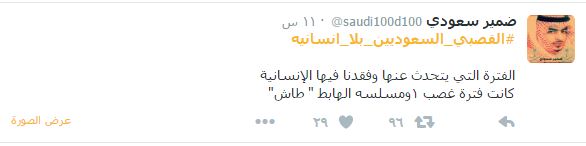 – ضمير سعودي: “الفترة التي يتحدث عنها وفقدنا فيها الإنسانية، كانت فترة “غصب ١”ومسلسه الهابط” طاش”.
