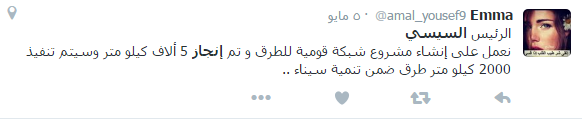 وجاءت ردود أفعال مؤيدي السيسي على مشروعات الطرق والكباري كالتالي: