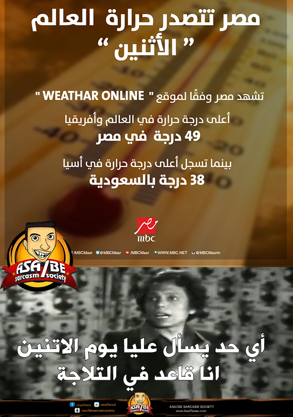 لجأ رواد موقع التواصل الاجتماعي “فيس بوك” من أجل التغلب على موجة الحر الشديدة التي تجتاح البلاد هذه الأيام، للسخرية من صعوبة التعايش في ظل هذا الارتفاع الكبير في درجات الحرارة، وصعوبة تحمل الخروج من المنزل في أوقات الصباح، وخاصة مع اقتراب شهر رمضان الكريم.