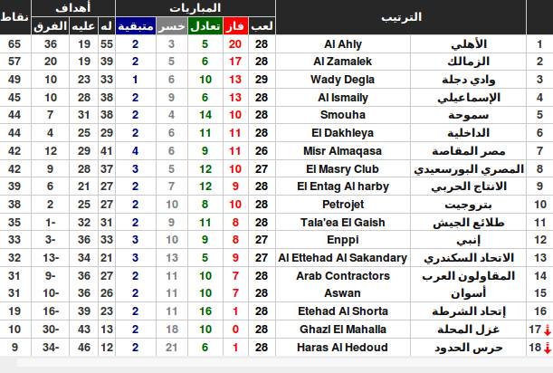 واحتل الأهلي صدارة الدوري الممتاز برصيد 65 نقطة، بينما جاء الزمالك في المركز الثاني برصيد 57 نقطة.