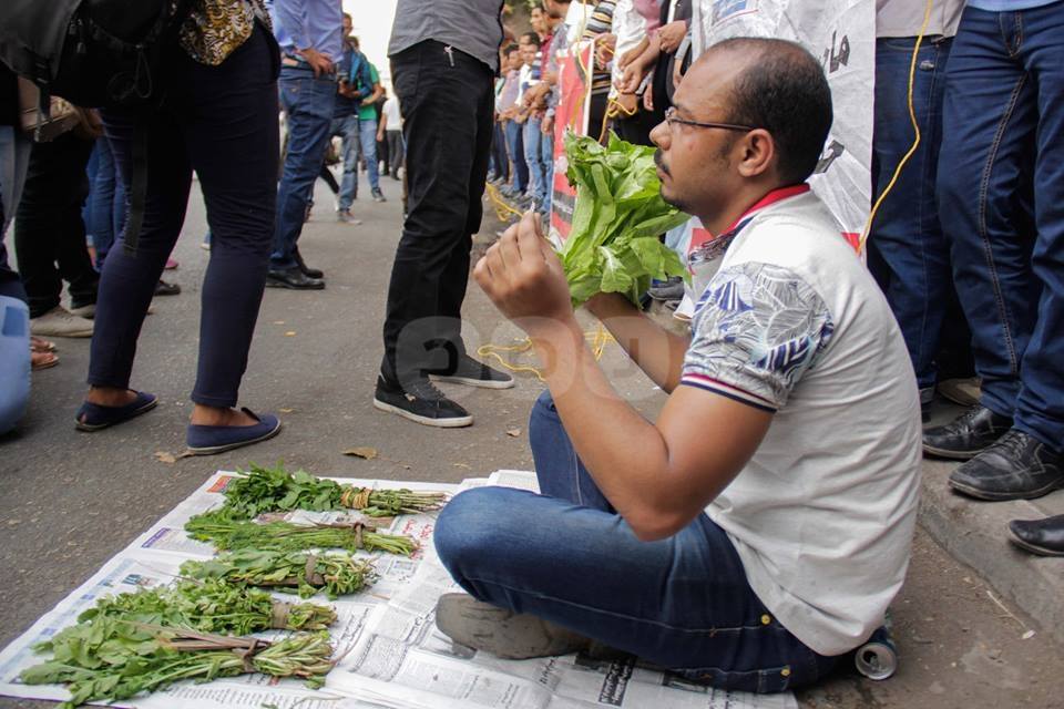وظهر أحد حملة الماجستير وهو يجلس على الأرض ويبيع الخضار، مؤكدًا أن هذه تكون نهاية كل باحث علمي في مصر.