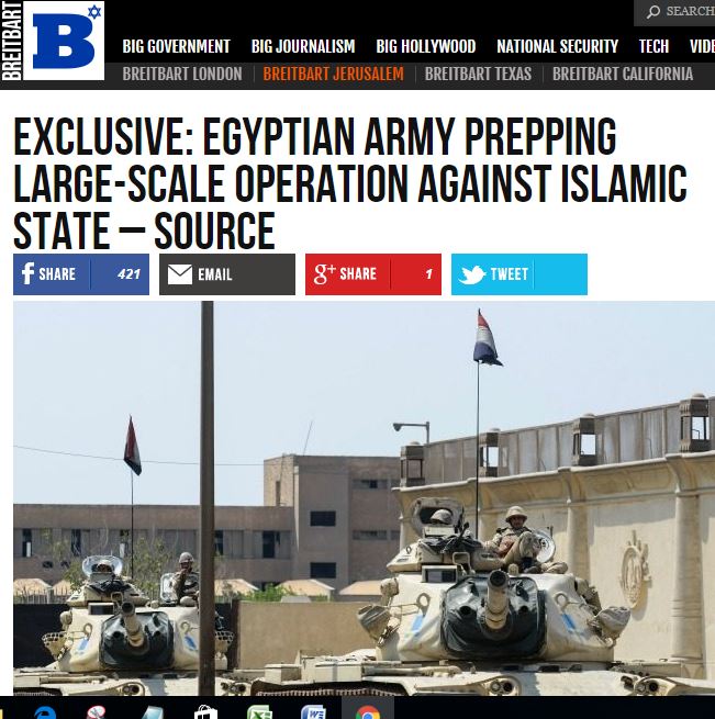 كشف مسؤول “إسرائيلي” لصحيفة “بريبارت” في نسختها “الإسرائيلية”، عن قيام القوات المسلحة المصرية بعملية عسكرية وشيكة في سيناء بدعم مخابراتي تقدمة دول الاحتلال.