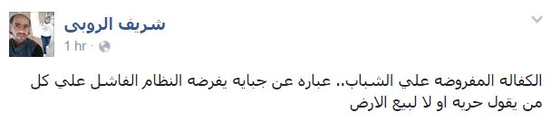 وقال -عبر منشور له على “فيس بوك”- “الكفالة المفروضة على الشباب.. عبارة عن جباية يفرضها النظام الفاشل على كل من يقول حرية أو لا لبيع الأرض”.