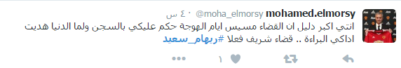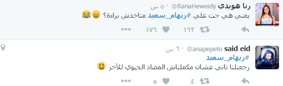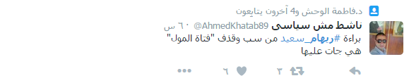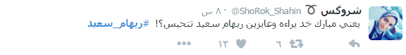 وأطلق رواد التواصل الاجتماعي هاشتاجا حمل عنوان “ريهام سعيد”، محتلا المرتبة الثانية فى قائمة الهاشتاجات الأكثر استخدامًا على موقع التواصل الاجتماعى “تويتر”، بعد براءة الإعلامية الشهيرة، من تهمة السب والتشهير بقضية “فتاة المول”.