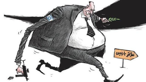 – ونشر موقع “الشرق الأوسط” رسمًا يسخر من  ادعاء إسرائيل بأنها تريد السلام.
