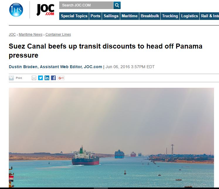 ولفت التقرير إلى أنه بافتتاح أعمال التوسعة بقناة بنما هذا الشهر ستكون قادرة على استيعاب السفن الأضخم بمقدار ثلاث أضعاف مقارنة بالسفن التي استوعبتها القناة قبل التوسعة، وهو ما سيزيد من قدرة القناة التنافسية مقارنة بقناة السويس الغير قادرة على استيعاب مثل هذه السفن الضخمة.