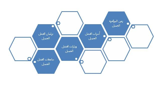 إن هذا كله دفع أحد الشباب أن يكتب مقالته البديعة عن “دولة الفشل الجميل”، لخمس مؤشرات لدولة الفشل الجميل، جمعها في هذا الشكل التوضيحي لرؤية نموذج عملي لهذا الدليل، إنه دليل الدولة الفاشلة: