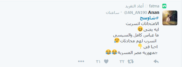تصدر هاشتاج "شاومينج" موقع التدوين العالمى "تويتر"، حيث عبّر الطلاب عن رأيهم فى تسريب امتحان اللغة الإنجليزية، وكافة امتحانات الثانوية العامة التي أصبح تسريبها عادة لا ينفك عنها الطلاب ولا تستطيع الوزارة منعها، وذلك من خلال