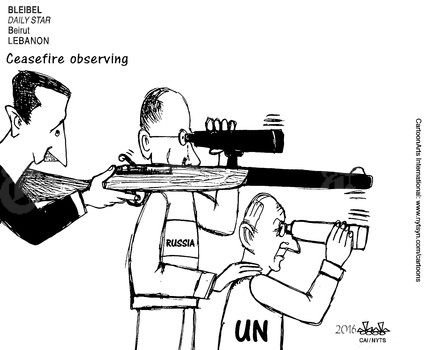 وجاءت مجازر بشار الأسد تحت سمع وبصر دولي، في كاريكاتير “نيويورك تايم”