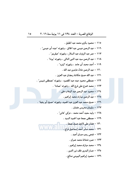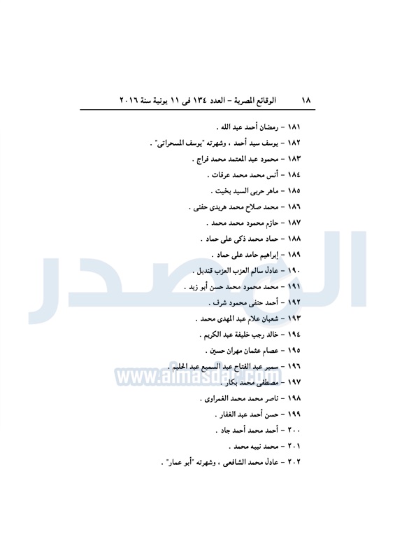 نشرت جريدة الوقائع المصرية، في العدد رقم 134، الصادرأمس في 11 يونيو 2016، قرار الإدراج على قوائم الكيانات الإرهابية والإرهابيين، الصادر في القضية رقم 451 لسنة 2016، حصر أمن دولة عليا، والمقيدة برقم 1 لسنة 2016.