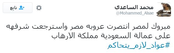دشن رواد مواقع التواصل الاجتماعي "تويتر"، هاشتاج بعنوان "عواد لازم يتحاكم"، تعليقًا على حكم القضاء الإداري ببطلان اتفاقية ترسيم الحدود بين مصر والسعودية، والتي تنازلت مصر بموجبها عن جزيرتي تيران وصنافير للمملكة العربية السعود