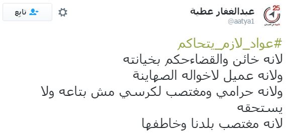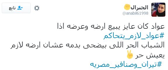 دشن رواد مواقع التواصل الاجتماعي “تويتر”، هاشتاج بعنوان “عواد لازم يتحاكم”، تعليقًا على حكم القضاء الإداري ببطلان اتفاقية ترسيم الحدود بين مصر والسعودية، والتي تنازلت مصر بموجبها عن جزيرتي تيران وصنافير للمملكة العربية السعودية.