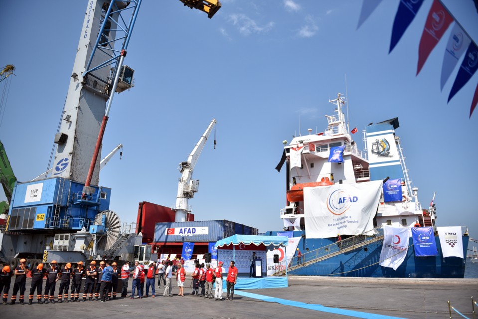 وجُمعت المساعدات على متن السفينة بواسطة منظمة الهلال الأحمر التركي وإدارة الكوارث والطوارئ التركية (آفاد)، حيث تم تجميع 13 ألف و775 طرد غذائي، و5 آلاف طن طحين، 3 أطنان سكر، وطنّين من الرز، و500 طن زيت عباد الشمس، و100 ألف قطعة ملابس، و20 ألف حذاء، و13.1 ألف لعبة أطفال، وألف 500 عبوة حفاظات أطفال.
